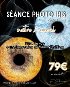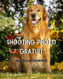 - Shooting photo pour animaux gratuit (15€ la photo) ou Séance photo Iris à 79€ au lieu de 139€ (comprenant la prise et une impression) / Inscription auprès de la photographe au 06.66.25.49.20