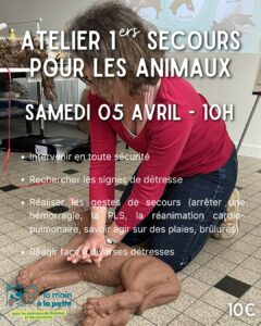 - Atelier d’initiation aux gestes de 1ers secours canins et félins – 10h – 10€*